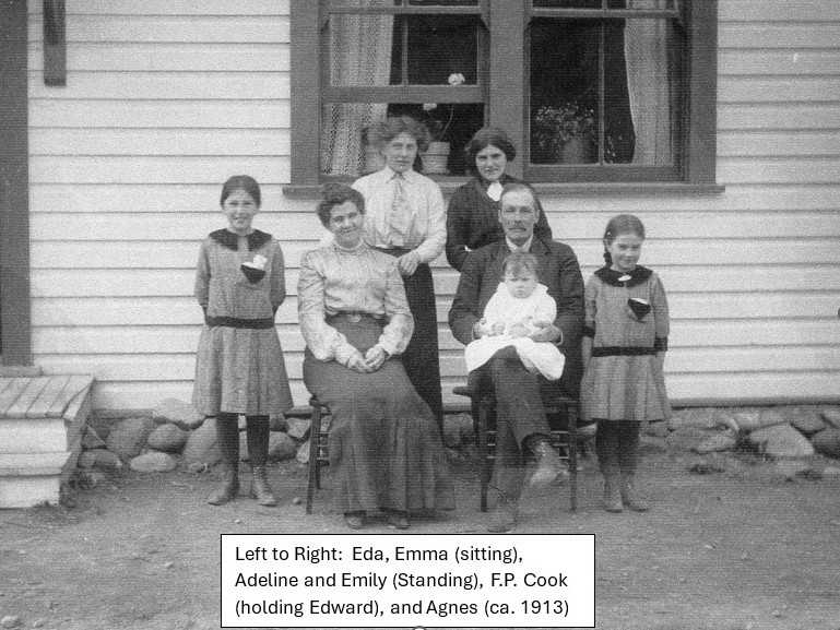 On June 15, 1892, in Lower Nicola, FP wed Emma Woodward. Emma was the half sister of Eleanor Woodward, wife of Archibald Irwin. Archibald was a Granite Creek prospector and mining recorder from 1887-1890. Eleanor was the first white woman at Granite Creek. Foxcrowle’s wife, Emma bore him 7 children. One was stillborn and one (Frances Mary) died at the age of 3 as the result of an accident. The 5 remaining children were: Adeline Eleanor, Emily Cecilia Tarzwell, Eda Elizabeth, Agnes Olive June, and Edward Henry Lumley. FP was so thrilled to finally have a son, he gave the doctor $100 as a thank you. Our log house was the only one at Granite Creek with modern furniture. We lived very comfortable lives thanks to Foxcrowle’s business savvy.